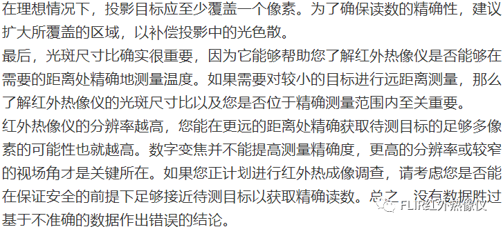 光斑尺寸比理論值僅能反映單一像素內(nèi)非常小范圍的溫度,但是單一像素測量值可能不準(zhǔn)確的原因有很多: