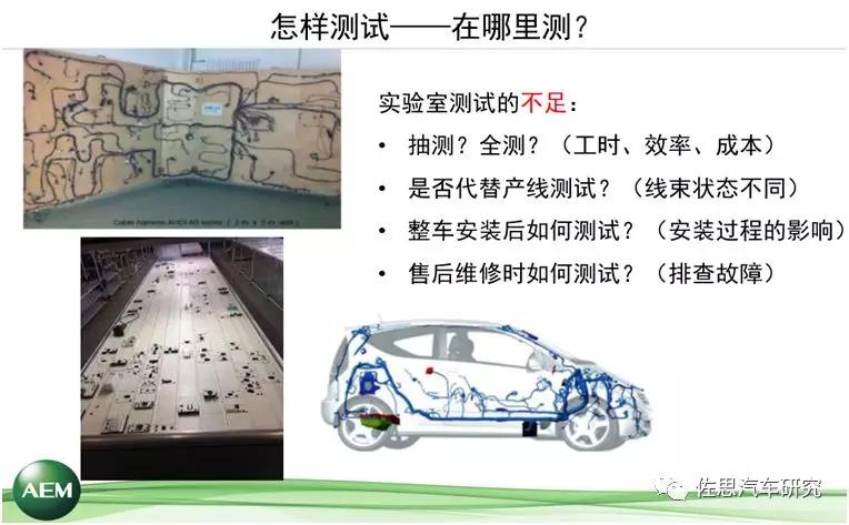 從目前的技術(shù)水平來講,線束在整車內(nèi)的布放仍然依靠全手工完成,發(fā)動機、車體、其他的焊接都可以用機器人來完成。布線這個工序是由操作人員手工完成的,由人來完成的事情就有可能出現(xiàn)錯誤,或者出現(xiàn)影響,而這個影響是在實驗室無法模擬出來的。