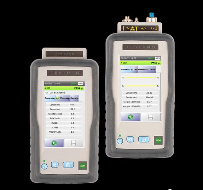 TestPro的LiveWiremap?功能,瞬間即可自動顯示連通性結(jié)果。TestPro提供回波損耗和近端串?dāng)_兩種輔助故障定位功能。通過熱插拔測試適配器支持MPTL、跳線、Cat8,和同軸電纜測試。完成自動測試后,儀表顯示明確的合格或不合格結(jié)論,并按定制標簽格式自動保存測試結(jié)果。