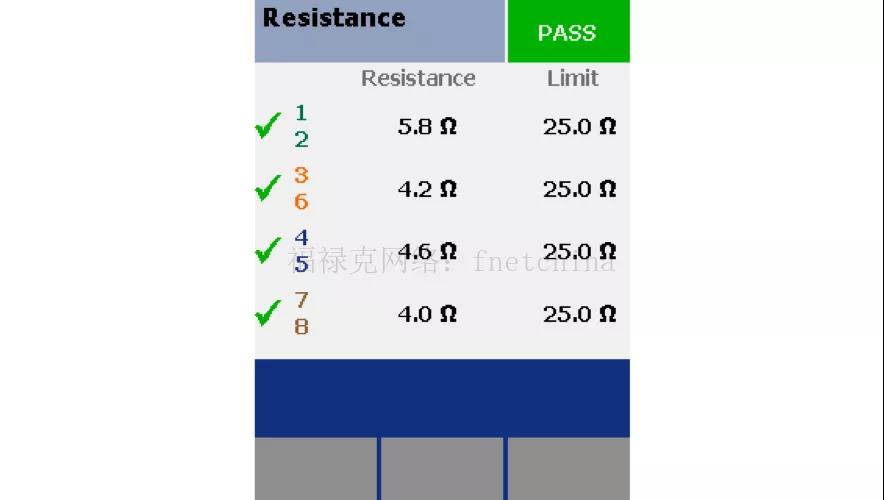 測試雙絞線布線時,我們要考慮直流環(huán)路電阻,即一對線內(nèi)一端環(huán)繞相接的兩根導(dǎo)線的總電阻。直流電阻受導(dǎo)體直徑和總長度影響——不僅直徑較小的導(dǎo)體具有較大的直流電阻,而且電阻還與電纜長度成正比。根據(jù)IEEE標(biāo)準(zhǔn),線對的通道直流環(huán)路電阻應(yīng)小于(或等于)25歐姆(Ω),而永 久鏈路的直流環(huán)路電阻應(yīng)小于(或等于)21Ω。
